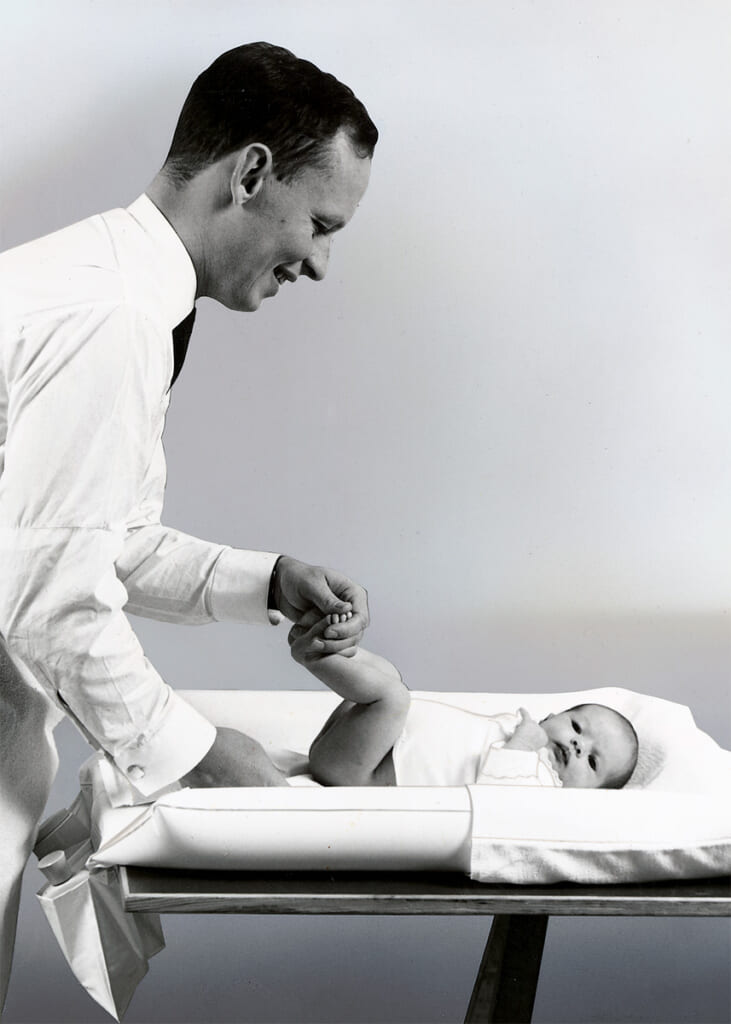 おむつを替えている創業者のビョルン。 今の時代においては珍しいことではないかもしれませんが、1960年代当時においては大きな反響を呼びました。 私たちは、真のパイオニアとしてビジネスをリードしただけでなく、平等な子育てを支持しました。